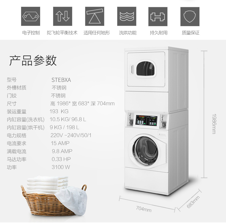 速比坤下洗上烘投幣洗衣機(jī)STEBXA