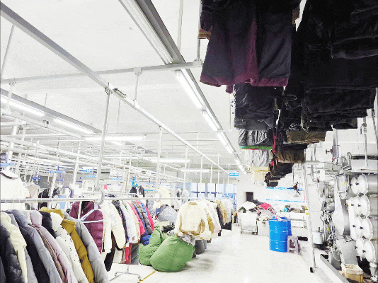 對于機器容量大、洗滌設(shè)備多的洗衣工廠,一個水洗師傅也能輕松搞定七八百件羽絨服的洗滌,很多洗衣師傅一千件羽絨服也不在話下。