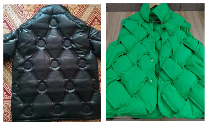 傳統(tǒng)羽絨服通過(guò)縫合線(xiàn)分割羽絨,針縫洞眼會(huì)漏風(fēng)漏雨,影響保暖,還容易鉆絨,而壓膠工藝很好地解決了這些問(wèn)題。但壓膠工藝也給洗滌帶來(lái)挑戰(zhàn),洗滌不當(dāng)或者操作有誤,極易導(dǎo)致羽絨服壓膠隔離帶分開(kāi),結(jié)果導(dǎo)致羽絨形成堆積現(xiàn)象。