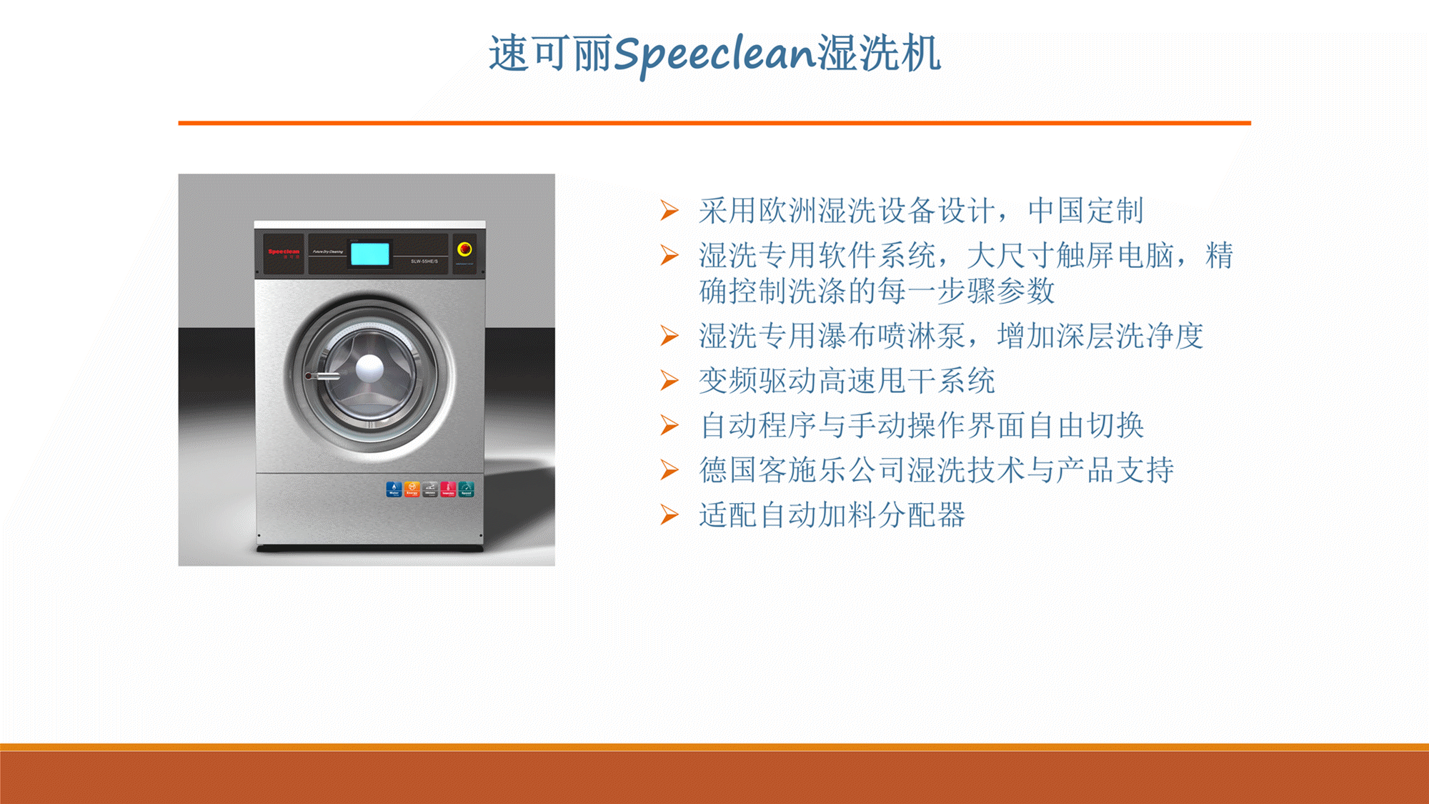 今年7月,礎(chǔ)潤(rùn)全新推出速可麗Speeclean的品牌,品牌命名源自于Speed與Clean的結(jié)合,表達(dá)“高效”與“潔凈”融合的品牌內(nèi)涵。設(shè)備采用歐洲成熟濕洗設(shè)備設(shè)計(jì),全球優(yōu)質(zhì)生產(chǎn)工廠定制,國(guó)內(nèi)各省份設(shè)立銷售服務(wù)中心。為中國(guó)洗滌企業(yè)水洗升級(jí),引入濕洗自動(dòng)化系統(tǒng)掃清了價(jià)格高、培訓(xùn)難,售后慢等多重障礙,讓濕洗真正觸手可及!